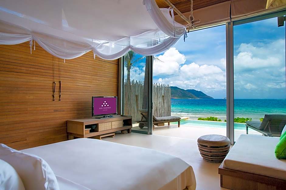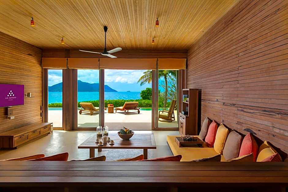 Set on the beach, this 3-bedroom villa offers views of the sea, a private pool, lap pool, and a sun terrace. Guests can find a spacious living room, dining room and kitchenette for in-villa dinning. The 2 master bedrooms are fitted with a large open-plan bathroom, bathtub and an outdoor shower.
