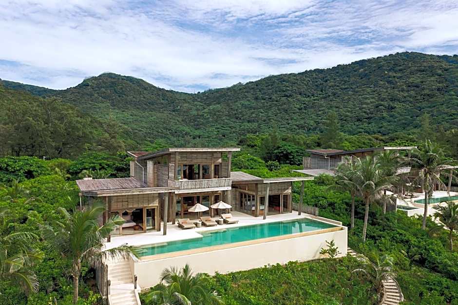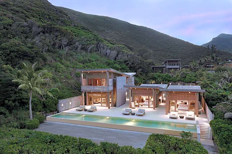 Overlooking panoramic view of the ocean, this 3-bedroom villa has a spacious living room, dining room, kitchenette for in-villa dinning, private pool, lap pool, and a sun terrace. The 2 master bedrooms has a large open-plan bathroom with a bathtub, and an outdoor shower.
